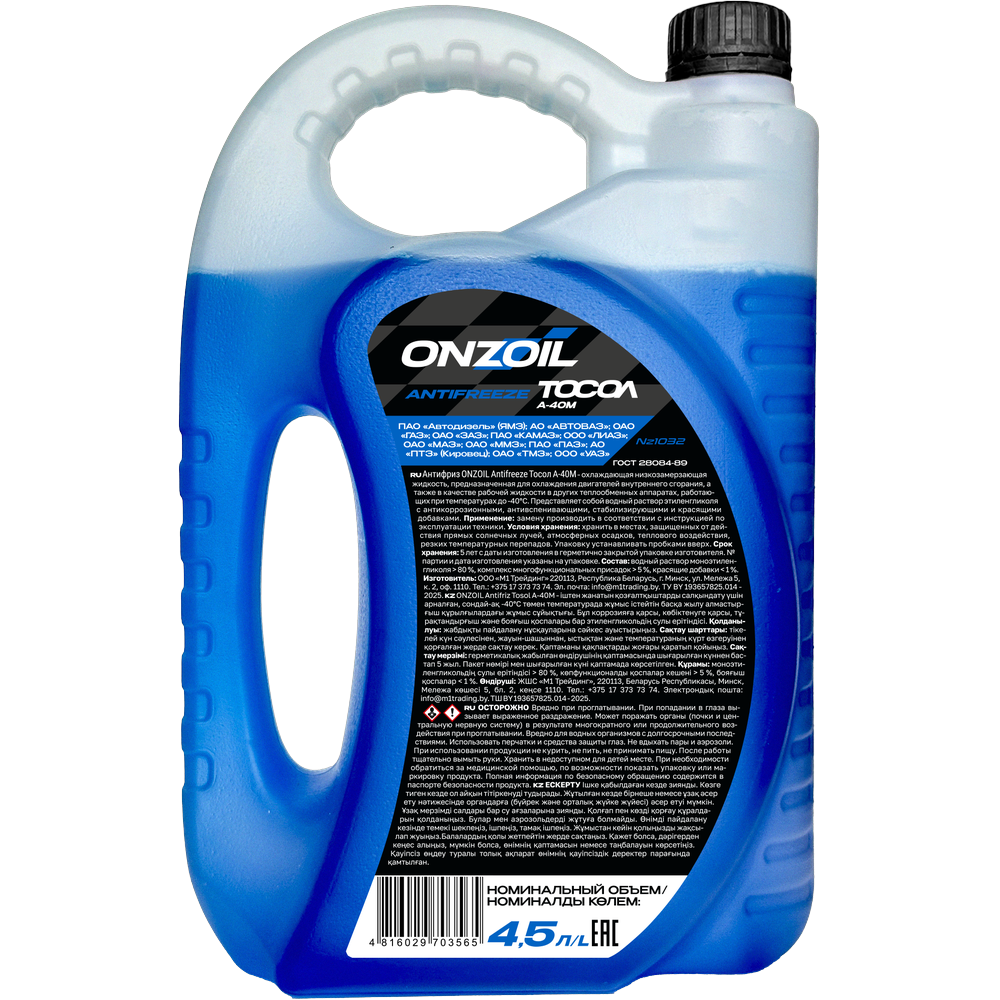ONZOIL Antifreeze Тосол А-40М — представляет собой водный раствор этиленгликоля с антикоррозионными, антивспенивающими, стабилизирующими и красящими добавками