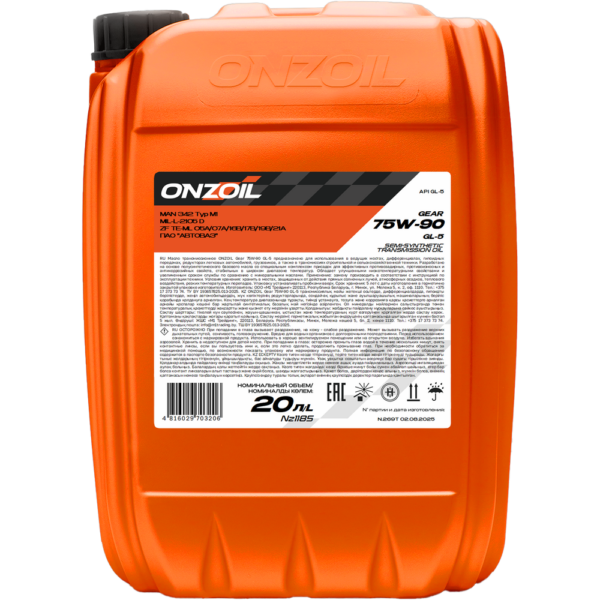 ONZOIL Gear 75W-90 GL-5 — полусинтетическое трансмиссионное масло содержит специально подобранный комплекс присадок для обеспечения эффективных противозадирных, противоизносных и антикоррозийных свойств. Это масло стабильно и эффективно работает в широком диапазоне температур на протяжении всего срока службы. Оно обладает улучшенными низкотемпературными характеристиками и обеспечивает увеличенный срок службы по сравнению с маслами на минеральной основе, что делает его оптимальным выбором для эксплуатации в сложных условиях