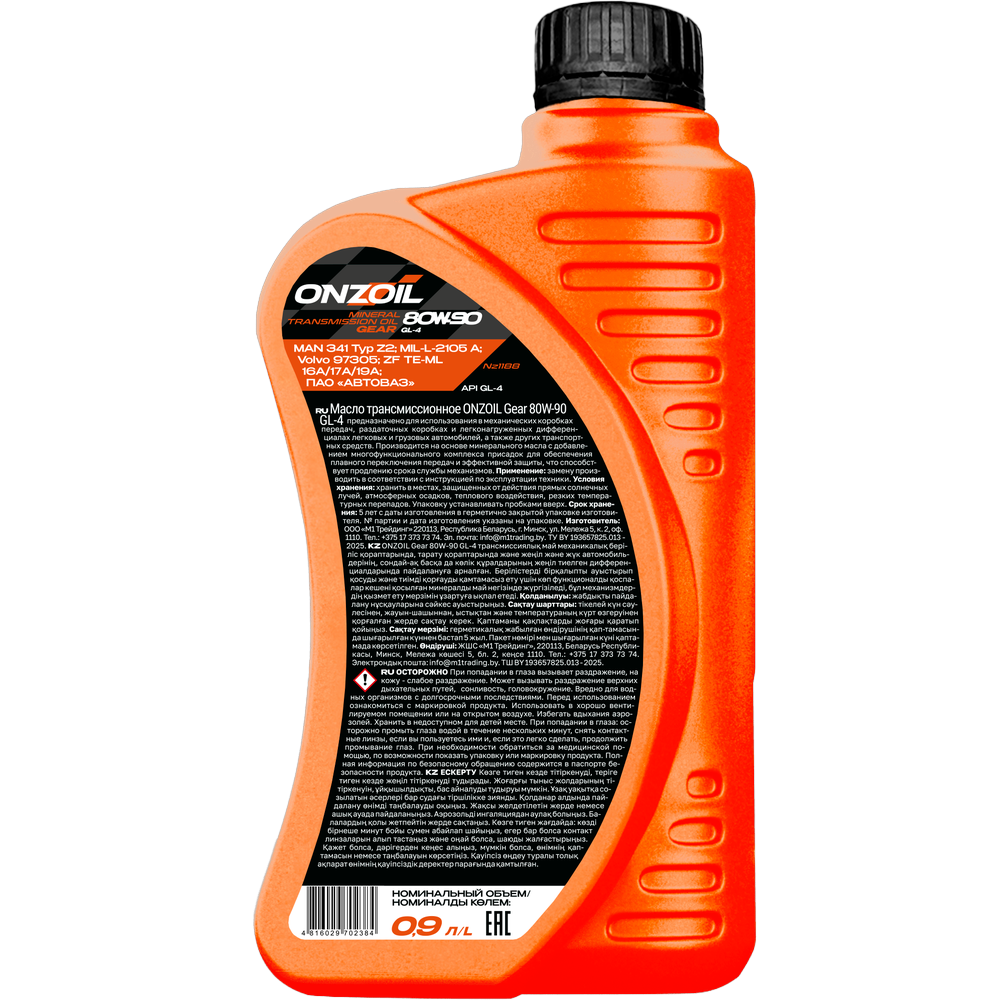 Трансмиссионное масло ONZOIL Gear 80W-90 GL-4 Минеральное — 0.9L